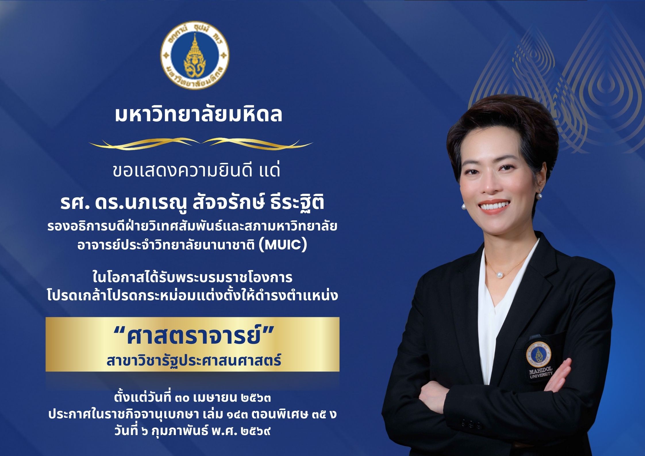- ประกาศสำนักนายกรัฐมนตรี เรื่อง แต่งตั้งกรรมการสภามหาวิทยาลัยมหิดล ผู้ทรงคุณวุฒิ