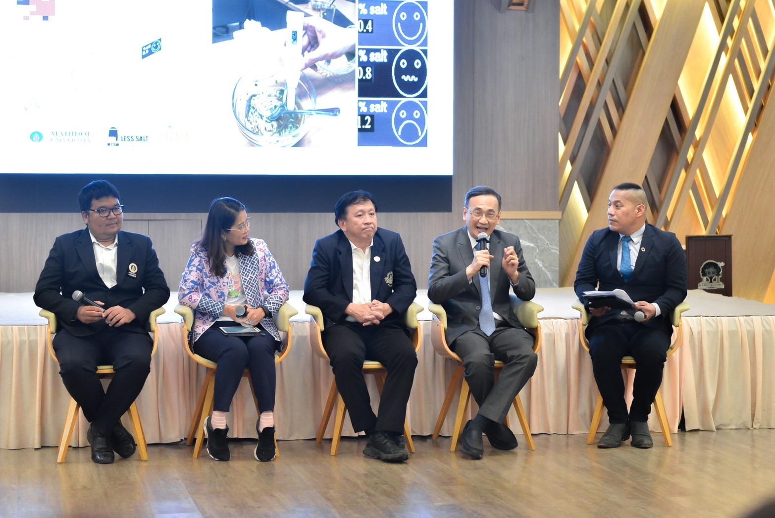 สำหรับช่วง Dinner Talk : Energy for Change ประกอบด้วยผู้ร่วมเสวนา ได้แก่ รองศาสตราจารย์ นายแพทย์สุรศักดิ์ กันตชูเวสศิริ คณะแพทยศาสตร์โรงพยาบาลรามาธิบดี และประธานเครือข่ายลดบริโภคเค็ม รองศาสตราจารย์ นายแพทย์อดิศักดิ์ ผลิตผลการพิมพ์ ผู้อำนวยการสถาบันแห่งชาติเพื่อการพัฒนาเด็กและครอบครัว ผู้ช่วยศาสตราจารย์ ดร.พัทธ์ธีรา นาคอุไรรัตน์ รักษาการแทนรองผู้อำนวยการฝ่ายบริหาร โครงการจัดตั้งสถาบันสิทธิมนุษยชนและสันติศึกษา ดร.ณพล อนุตตรังกูร หัวหน้าศูนย์วิจัยและบริการวิชาการ โครงการจัดตั้งวิทยาเขตนครสวรรค์ และ รองศาสตราจารย์ ดร.ณัฐวุฒิ พิมพา ผู้ช่วยคณบดีด้านการพัฒนาที่ยั่งยืน วิทยาลัยการจัดการ และในช่วง Project for change : minihackathon บรรยายโดย ดร.ตรียุทธ พรหมศิริ ผู้ช่วยคณบดีงานวิชาการ นวัตกรรมและการเรียนรู้ตลอดชีวิต วิทยาลัยการจัดการ