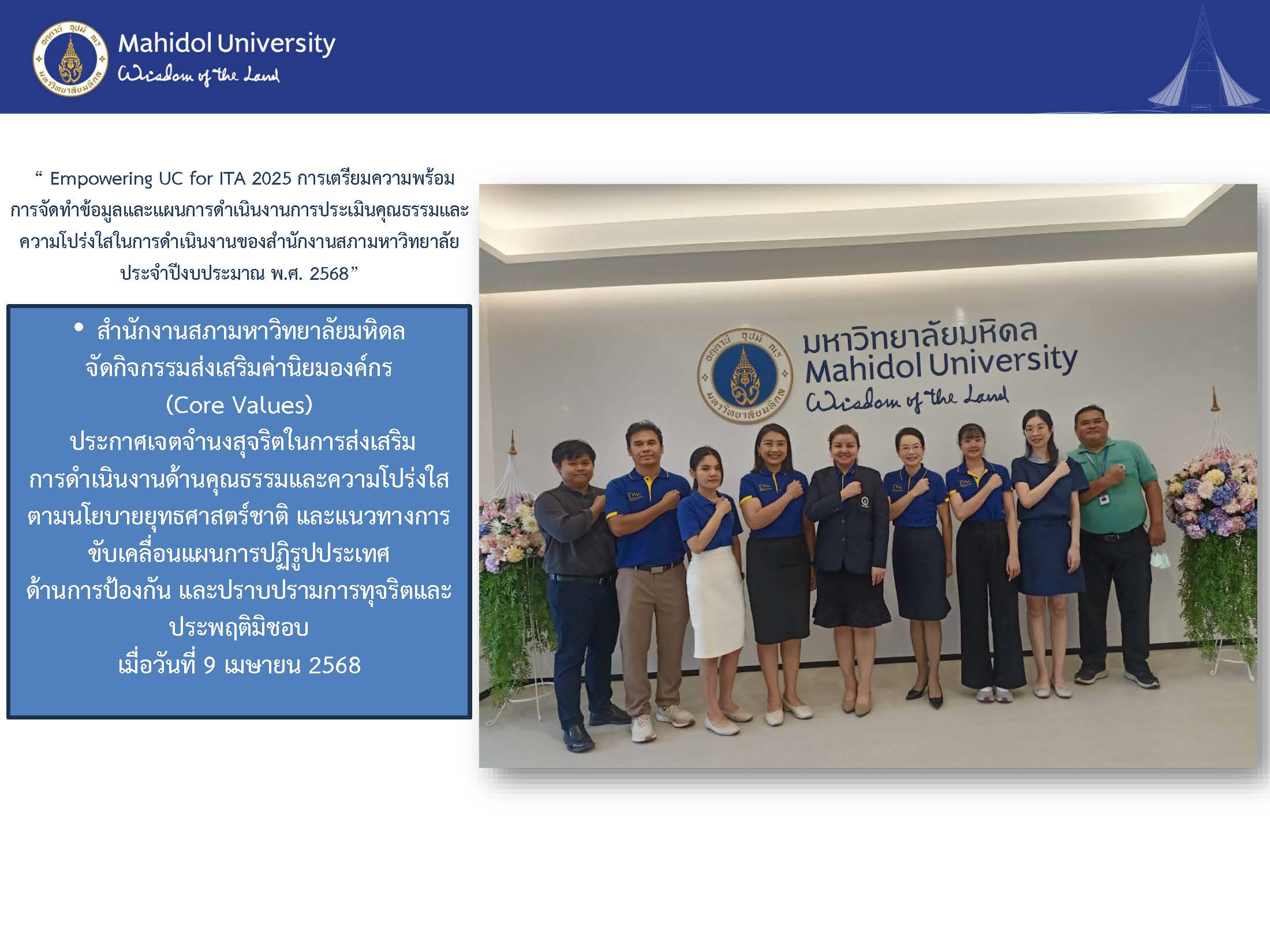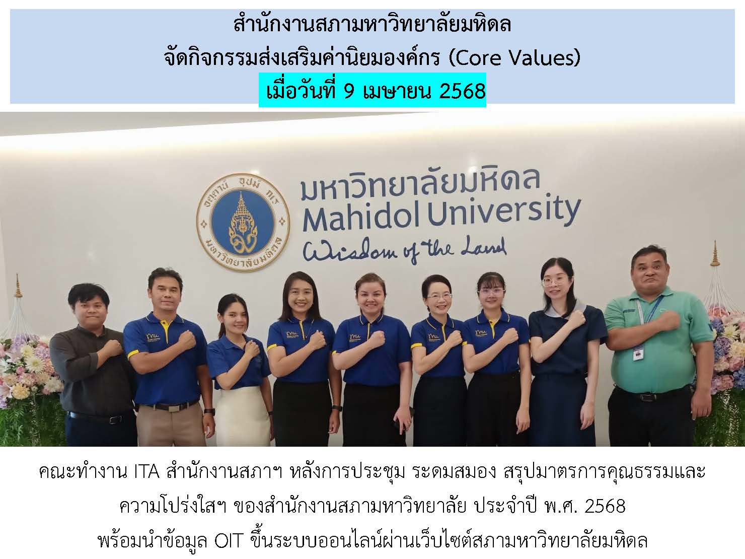 สำนักงานสภามหาวิทยาลัยมหิดล จัดกิจกรรมส่งเสริมค่านิยมองค์กร (Core Values)