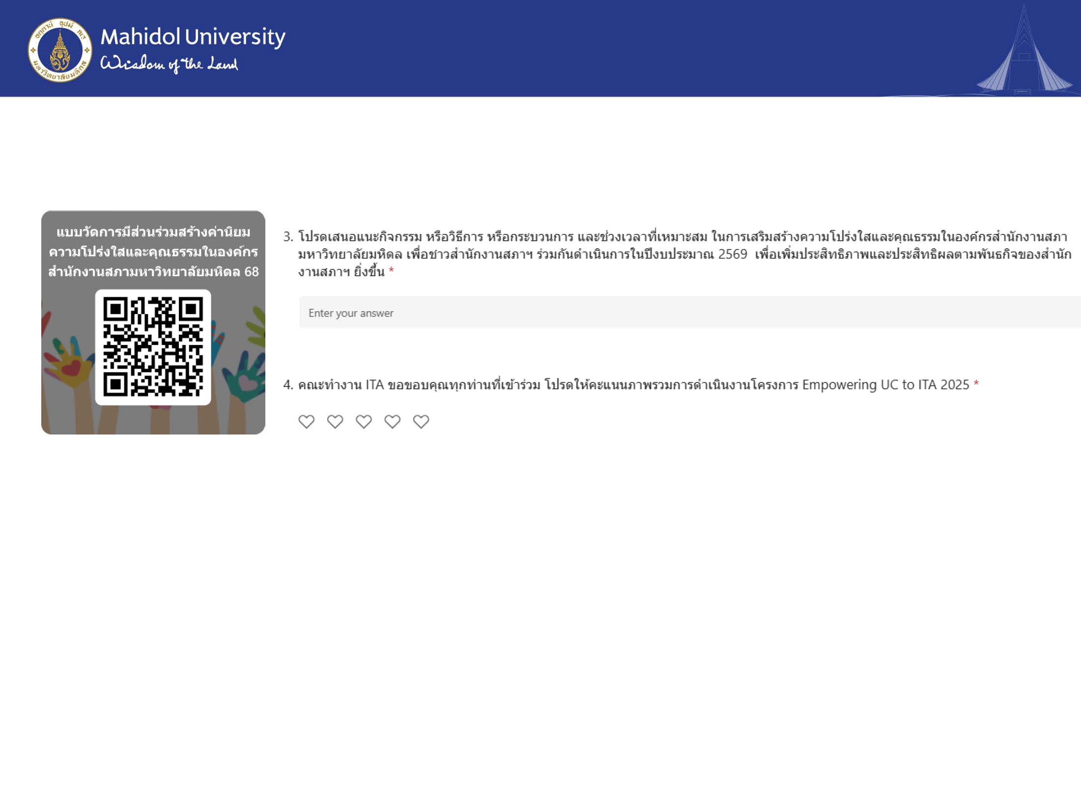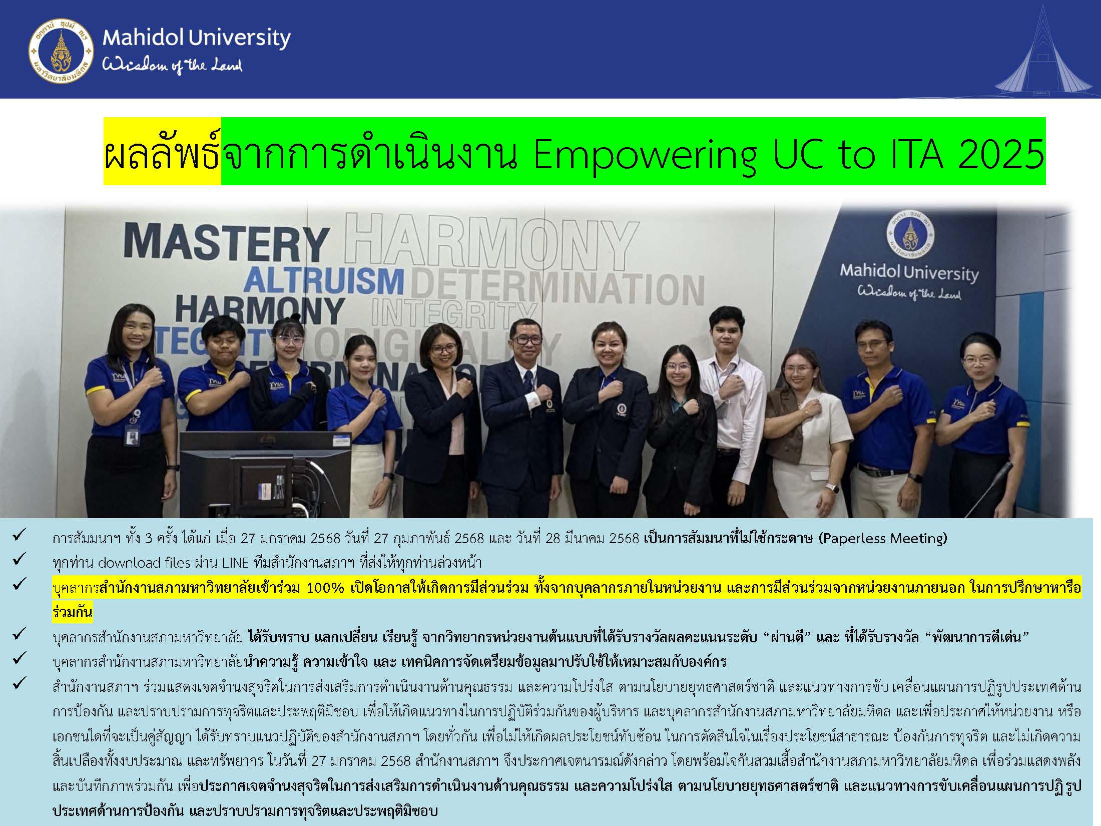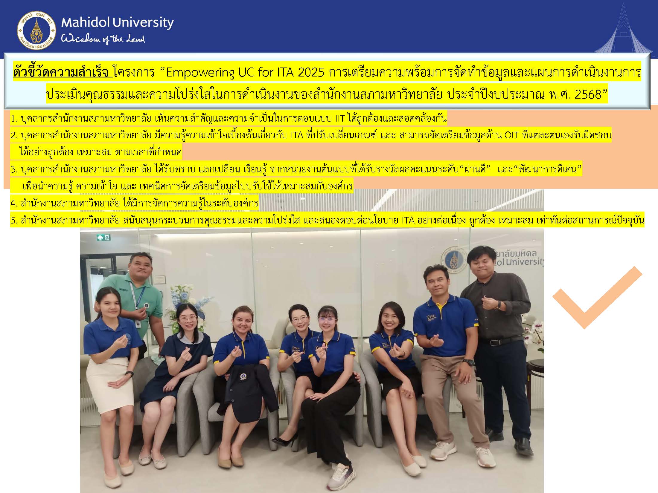 วันที่ 9 เมษายน 2568 คณะทำงาน ITA สำนักงานสภาฯ หลังการประชุม ระดมสมอง สรุปมาตรการคุณธรรมและความโปร่งใสฯ ของสำนักงานสภามหาวิทยาลัย ประจำปี พ.ศ. 2568 พร้อมนำข้อมูล OIT ขึ้นระบบออนไลน์ผ่านเว็บไซต์สภามหาวิทยาลัยมหิดล
