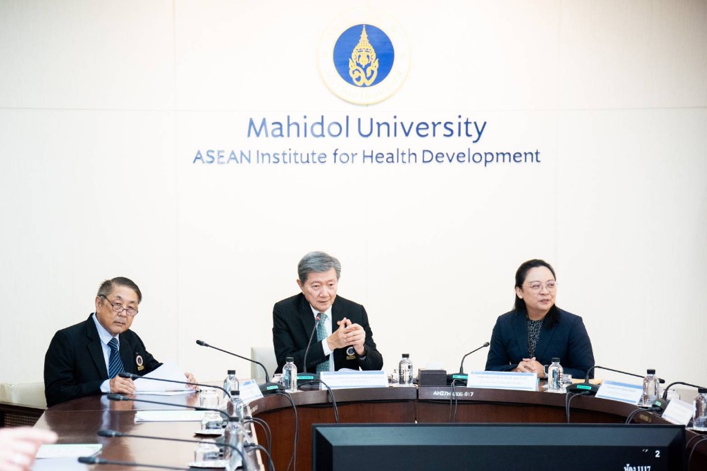วันที่ 11 มิถุนายน 2568 ศาสตราจารย์คลินิกเกียรติคุณ นายแพทย์ปิยะสกล สกลสัตยาทร นายกสภามหาวิทยาลัยมหิดล พร้อมด้วยกรรมการสภามหาวิทยาลัยมหิดล และทีมผู้บริหาร รับฟังผลการดำเนินงานของส่วนงาน (University Council Visit : 4) ครั้งที่ 1/2568 ของสถาบันพัฒนาสุขภาพอาเซียน มหาวิทยาลัยมหิดล และรับฟังผลการดำเนินงานที่ผ่านมา รวมทั้งการพัฒนาและความท้าทายในอนาคต โดยมี รองศาสตราจารย์ ดร.ธันวดี สุขสาโรจน์ ผู้อำนวยการสถาบันพัฒนาสุขภาพอาเซียน มหาวิทยาลัยมหิดล พร้อมด้วยคณะผู้บริหาร คณาจารย์ และบุคลากร เข้าร่วมรับฟังความคิดเห็น ณ ห้องประชุมกระแส ชนะวงศ์ อาคารอำนวยการ สถาบันพัฒนาสุขภาพอาเซียน มหาวิทยาลัยมหิดล ศาลายา โดยมีประเด็นดังต่อไปนี้