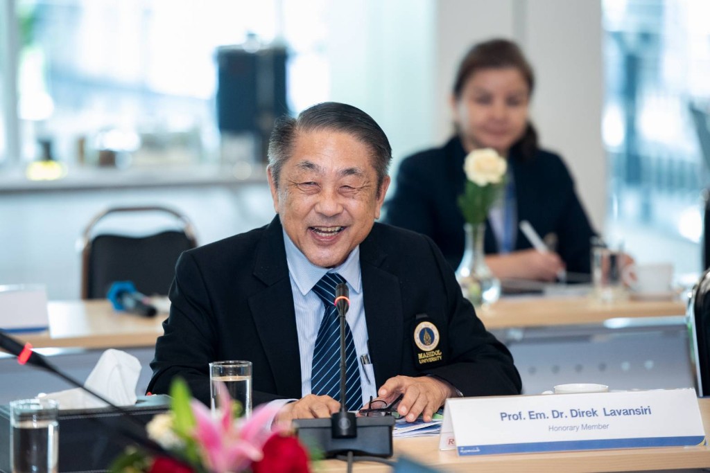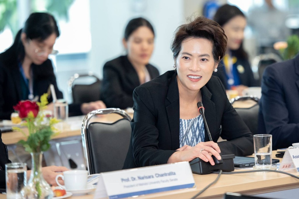 วันที่ 11 มิถุนายน 2568 ศาสตราจารย์คลินิกเกียรติคุณ นายแพทย์ปิยะสกล สกลสัตยาทร นายกสภามหาวิทยาลัยมหิดล พร้อมด้วย กรรมการสภามหาวิทยาลัยมหิดล และทีมผู้บริหาร รับฟังผลการดำเนินงานของส่วนงาน (University Council Visit : 4) ครั้งที่ 2/2568 ของวิทยาลัยนานาชาติ มหาวิทยาลัยมหิดล และรับฟังผลการดำเนินงานที่ผ่านมา รวมทั้งการพัฒนาและความท้าทายในอนาคต โดยมี ศาสตราจารย์ แพทย์หญิงจุฬธิดา โฉมฉาย คณบดีวิทยาลัยนานาชาติ พร้อมด้วยคณะผู้บริหาร คณาจารย์ และบุคลากร เข้าร่วมรับฟังความคิดเห็น ณ ห้องประชุมจรินทร์ยารัศมิ์ อาคารอทิตยาทร วิทยาลัยนานาชาติ มหาวิทยาลัยมหิดล ศาลายา โดยมีประเด็นดังต่อไปนี้