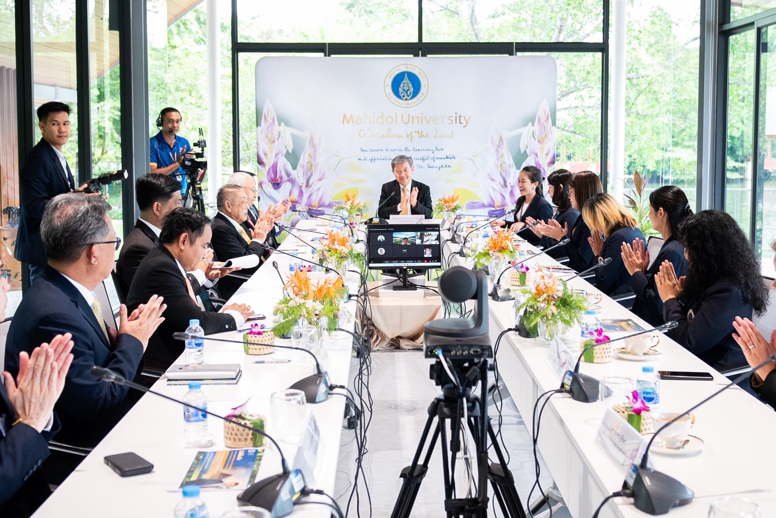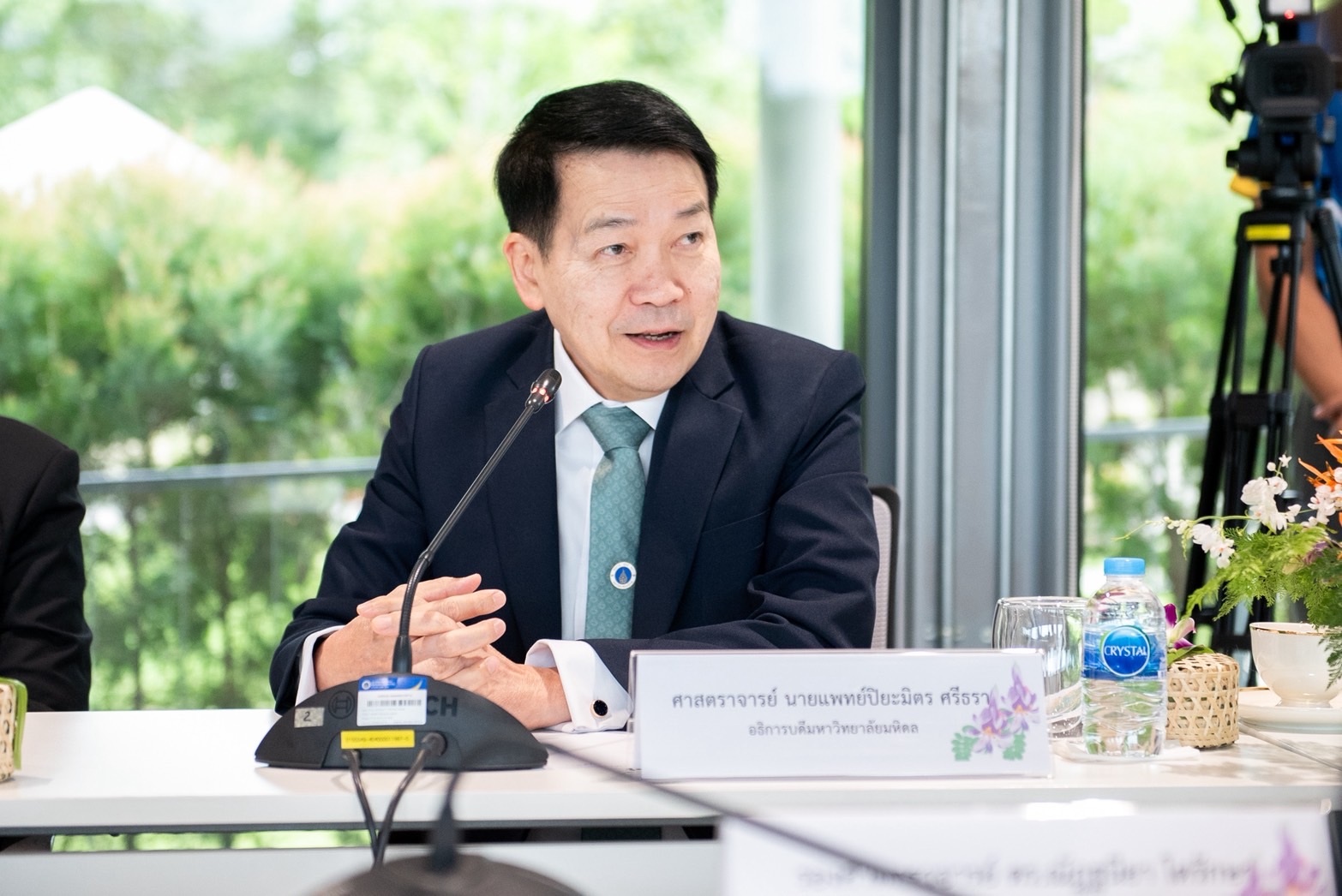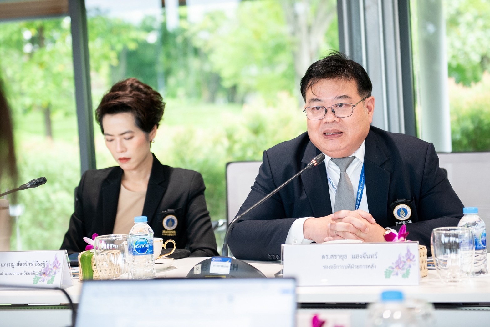 วันที่ 30 กรกฎาคม 2568 ศาสตราจารย์คลินิกเกียรติคุณ นายแพทย์ปิยะสกล สกลสัตยาทร นายกสภามหาวิทยาลัยมหิดล พร้อมด้วย กรรมการสภามหาวิทยาลัยมหิดล และทีมผู้บริหารมหาวิทยาลัยมหิดล รับฟังผลการดำเนินงานของส่วนงาน (University Council Visit : 4) ครั้งที่ 29/2568 ของโครงการจัดตั้งสถาบันอุทยานธรรมชาติวิทยาสิรีรุกขชาติ มหาวิทยาลัยมหิดล และรับฟังผลการดำเนินงานที่ผ่านมา รวมทั้งการพัฒนาและความท้าทายในอนาคต โดยมี รองศาสตราจารย์ ดร.ณัฏฐนียา โตรักษา ผู้อำนวยการโครงการจัดตั้งสถาบันอุทยานธรรมชาติวิทยาสิรีรุกขชาติ มหาวิทยาลัยมหิดล พร้อมด้วย คณะผู้บริหาร และบุคลากร เข้าร่วมรับฟังความคิดเห็น ณ ห้อง Workshop ริมน้ำ โครงการจัดตั้งสถาบันอุทยานธรรมชาติวิทยาสิรีรุกขชาติ มหาวิทยาลัยมหิดล และผ่านระบบออนไลน์
