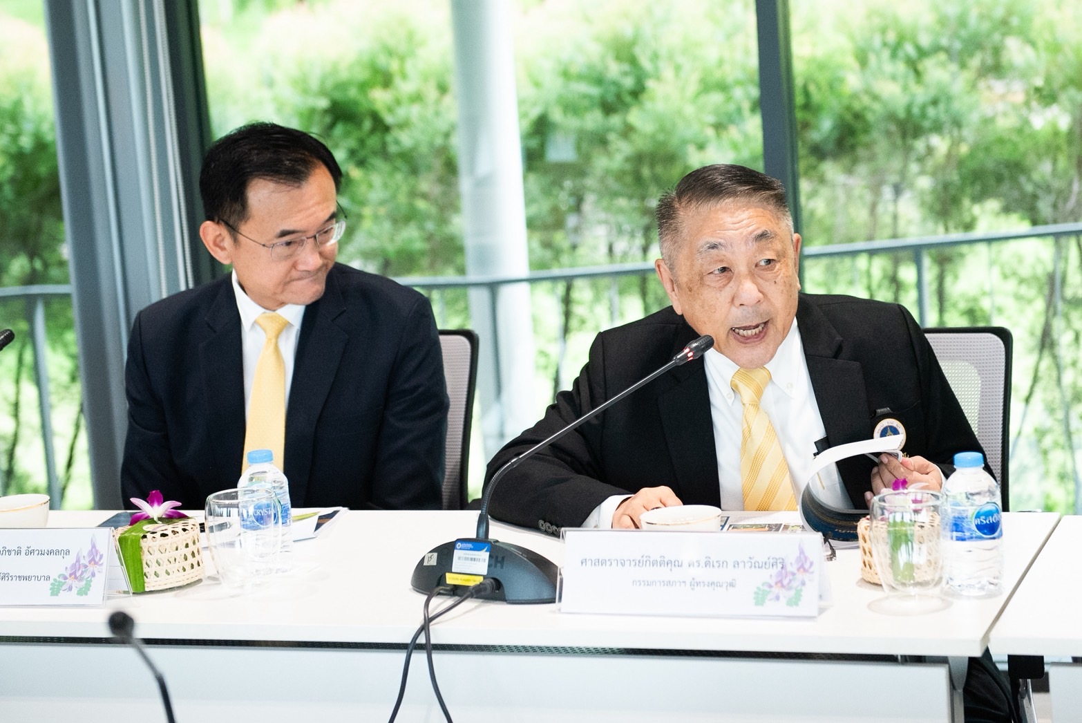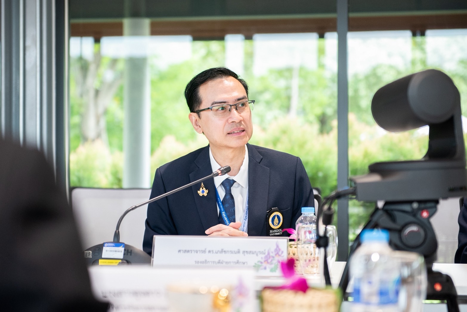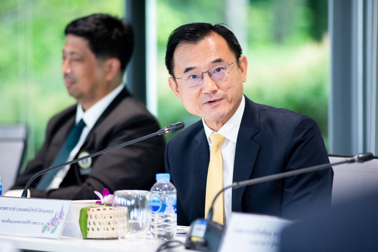 วันที่ 30 กรกฎาคม 2568 ศาสตราจารย์คลินิกเกียรติคุณ นายแพทย์ปิยะสกล สกลสัตยาทร นายกสภามหาวิทยาลัยมหิดล พร้อมด้วย กรรมการสภามหาวิทยาลัยมหิดล และทีมผู้บริหารมหาวิทยาลัยมหิดล รับฟังผลการดำเนินงานของส่วนงาน (University Council Visit : 4) ครั้งที่ 29/2568 ของโครงการจัดตั้งสถาบันอุทยานธรรมชาติวิทยาสิรีรุกขชาติ มหาวิทยาลัยมหิดล และรับฟังผลการดำเนินงานที่ผ่านมา รวมทั้งการพัฒนาและความท้าทายในอนาคต โดยมี รองศาสตราจารย์ ดร.ณัฏฐนียา โตรักษา ผู้อำนวยการโครงการจัดตั้งสถาบันอุทยานธรรมชาติวิทยาสิรีรุกขชาติ มหาวิทยาลัยมหิดล พร้อมด้วย คณะผู้บริหาร และบุคลากร เข้าร่วมรับฟังความคิดเห็น ณ ห้อง Workshop ริมน้ำ โครงการจัดตั้งสถาบันอุทยานธรรมชาติวิทยาสิรีรุกขชาติ มหาวิทยาลัยมหิดล และผ่านระบบออนไลน์