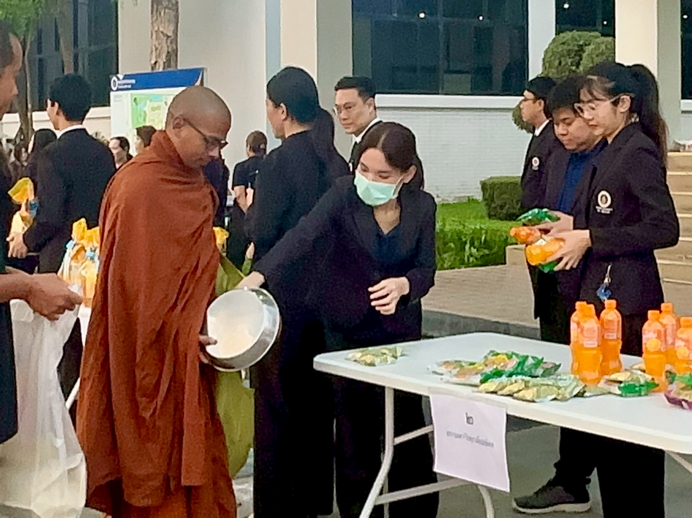 ทั้งนี้ พิธีประกอบด้วยการทำบุญตักบาตรพระภิกษุสามเณรจากวัดหทัยนเรศวร์ จำนวน 30 รูป และพิธีบำเพ็ญกุศลภายในอาคารสำนักงานอธิการบดี โดยผู้ร่วมพิธีได้สำรวมจิตถวายเป็นพระราชกุศล แสดงความจงรักภักดี และน้อมรำลึกถึงพระมหากรุณาธิคุณอันหาที่สุดมิได้