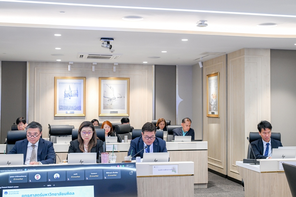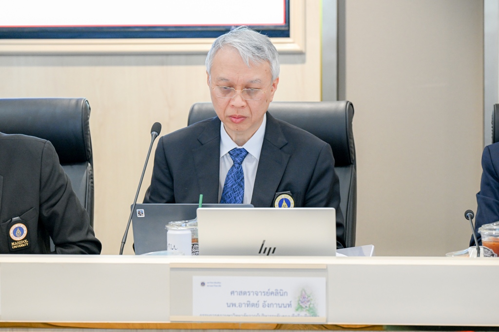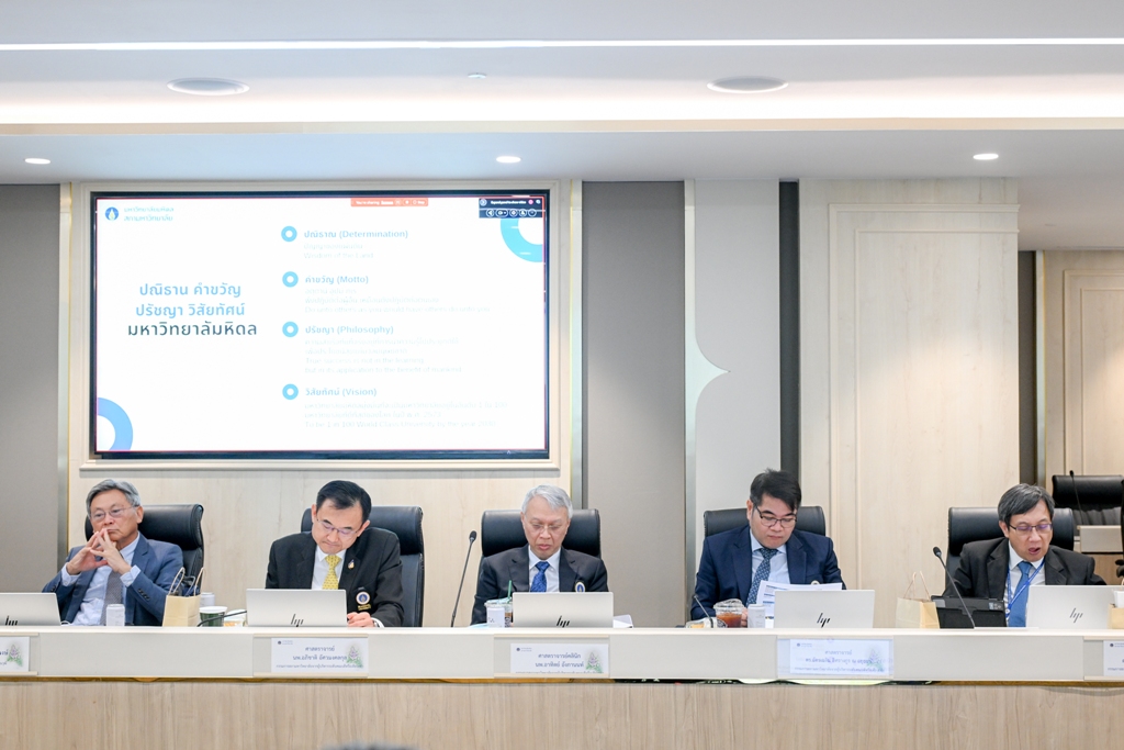 อธิการบดีมหาวิทยาลัยมหิดล นำเสนอรายงานความก้าวหน้าผลการปฏิบัติงาน (Presidential Report) ในที่ประชุมสภามหาวิทยาลัยมหิดล ครั้งที่ 615/2568