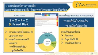 รายงานผลการดำเนินงานของคณะกรรมการตรวจสอบการบริหารงานประจำมหาวิทยาลัย ครั้งที่ 1 ประจำปีงบประมาณ 2568 การประชุมสภามหาวิทยาลัยมหิดล ครั้งที่ 621 วันพุธที่ 15 ตุลาคม พ.ศ. 2568